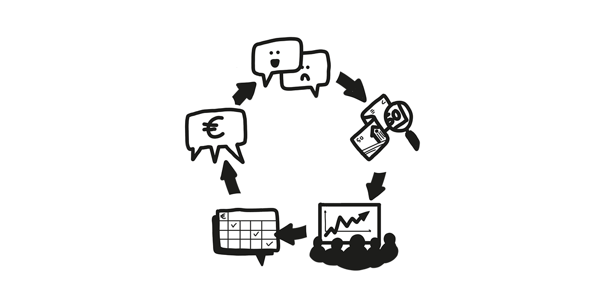 Das soziale Gehalt, die Matrix und der Gehaltsrat werden erst mit dem jährlichen, iterativen Prüfprozess zu einem runden Gehaltsmodell. Wie das bei uns abläuft, erfährst du hier. Spoiler: Verhandlungsgeschick spielt dabei keine Rolle.