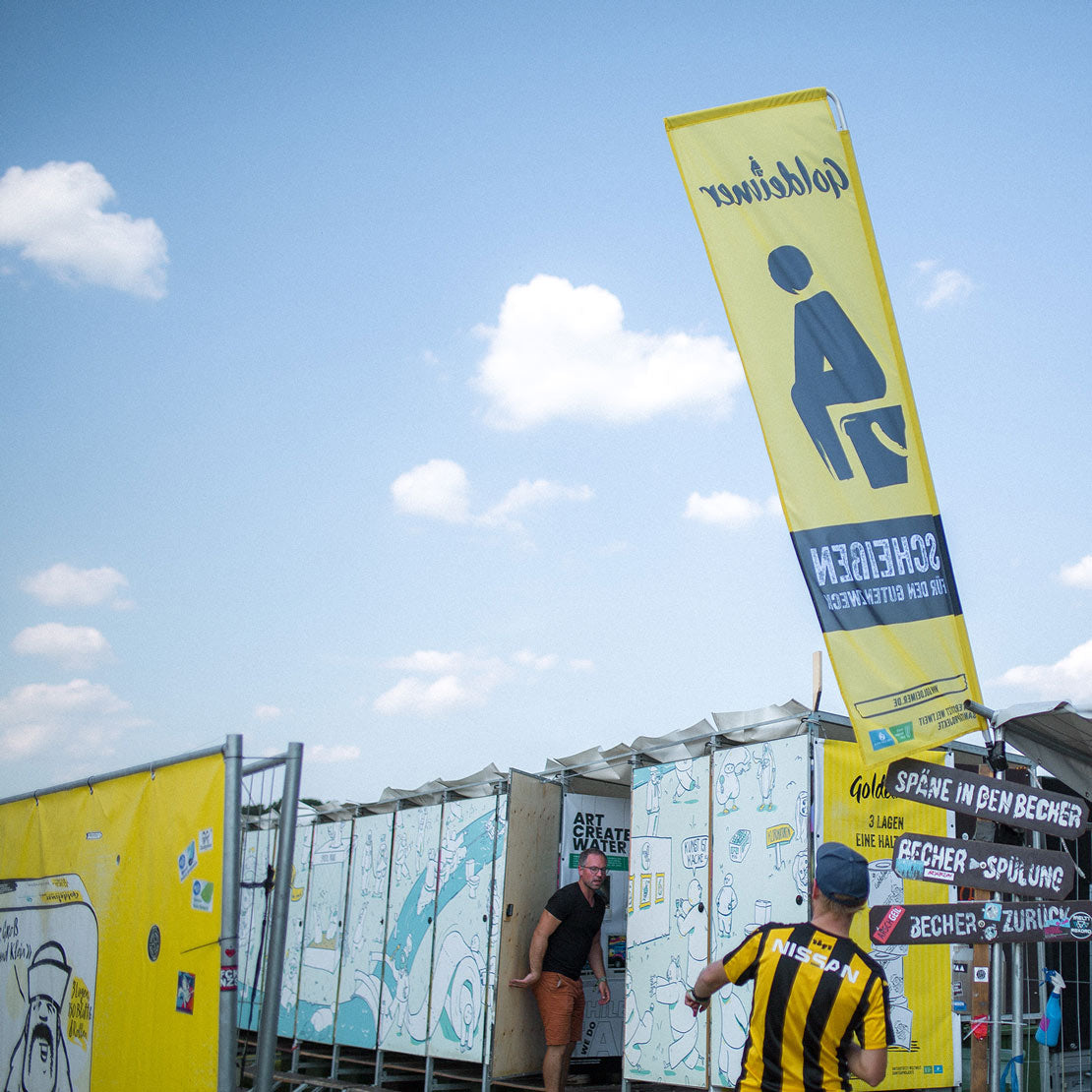Seit 2013 sind wir mit unseren nachhaltigen Goldeimer Klos auf Festivals in der ganzen Republik unterwegs. Warum machen wir das? Wie kann ich dabei sein? Alle Infos findest du hier.