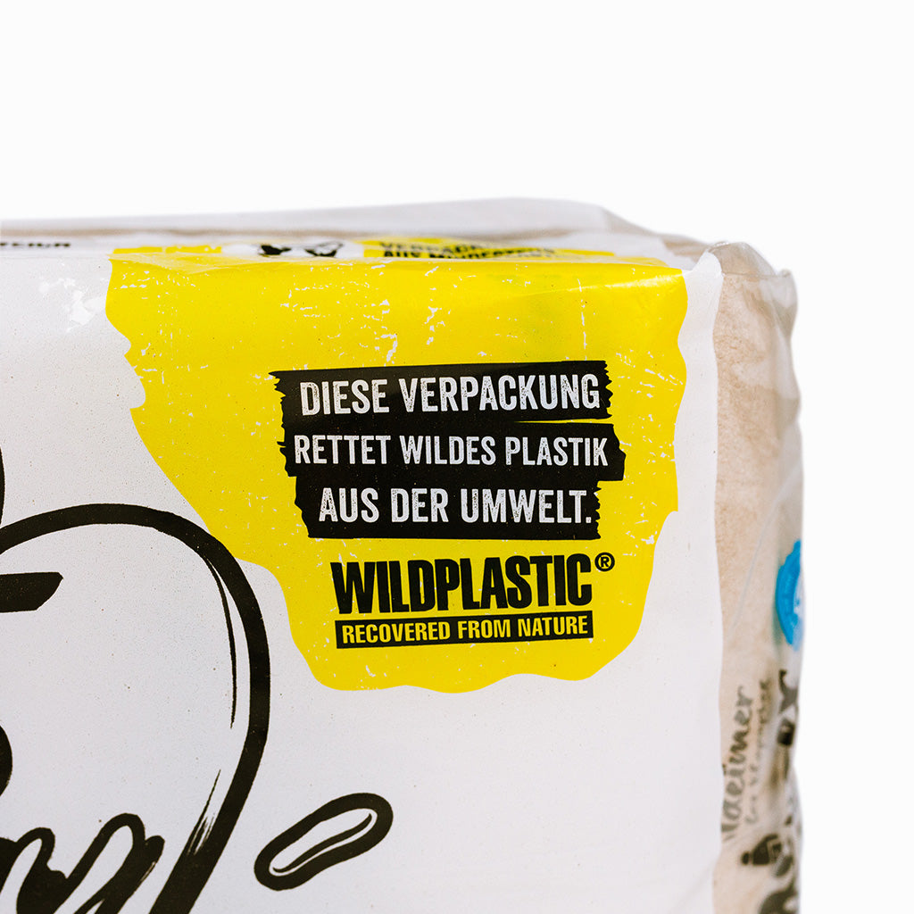 Wir lernen WILDPLASTIC® auf der Biofach kennen. Als zwei Unternehmen, die sich dem Gemeinwohl verpflichtet fühlen, finden wir schnell einen Draht zueinander. WILDPLASTIC® macht eigentlich Müllbeutel aus wildem Plastik, das aus der Natur gerettet wurde. Da uns die Verpackung von unserem Klopapier seit Jahren beschäftigt und 80% recycelter Kunststoff nicht das Ende der Fahnenstange sein soll, fragen wir uns zwangsläufig: Wäre eine Klopapierverpackung aus wildem Plastik möglich?