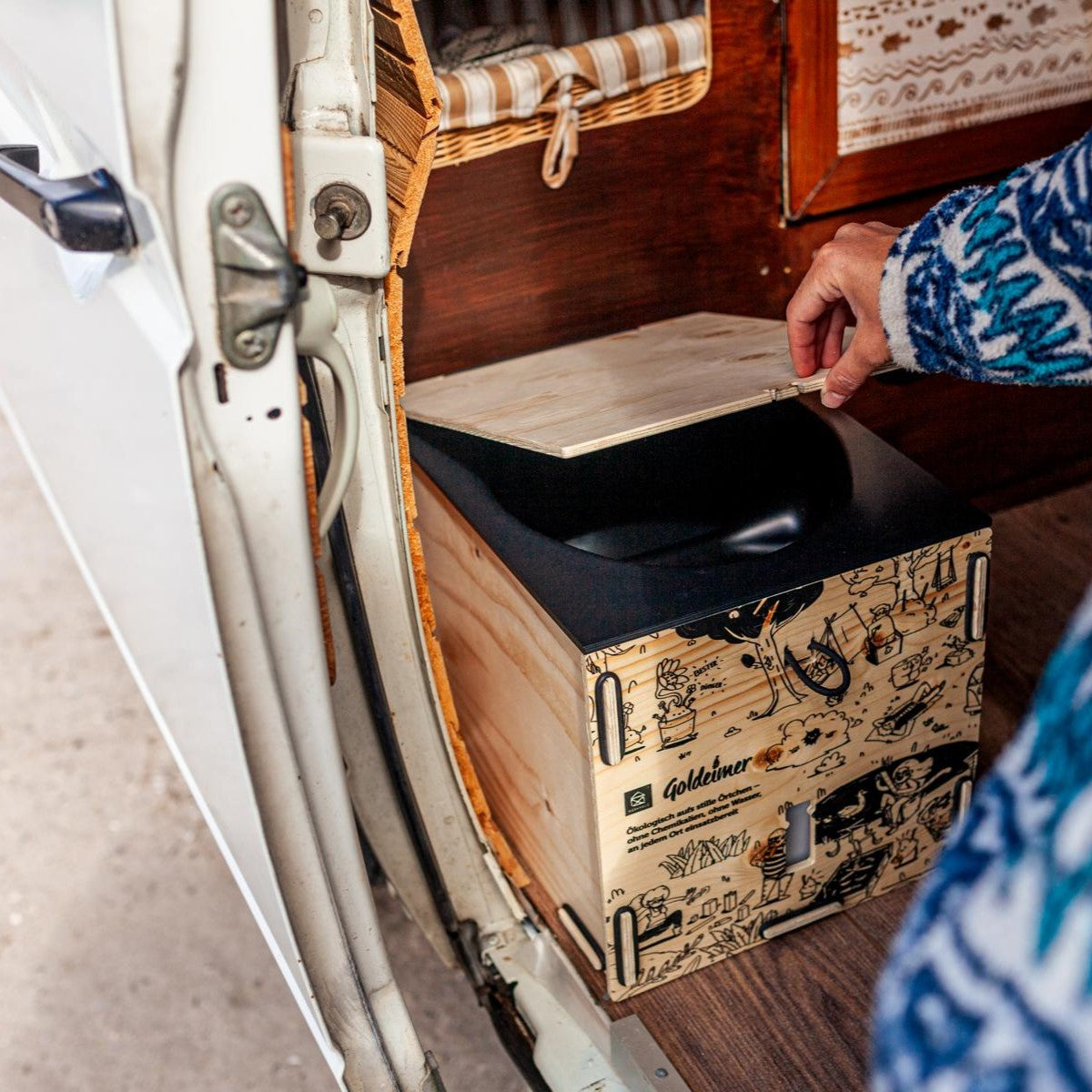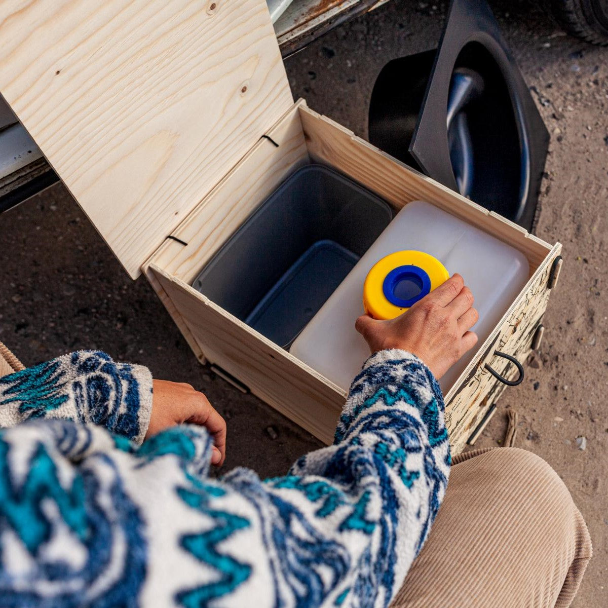 Die Trenntoilette in Euroboxformat ist eine geruchsarme Alternative zur Chemietoilette und lässt sich autark ohne Wasser, Chemie und Strom nutzen. Die großzügige Kapazität des Feststoffeimers und des Urinkanisters und das kompakte Maß macht die Trenntoilette zur idealen Nottoilette für verschiedene Fahrzeuge und beim Surfen, Vanlife oder Camping.