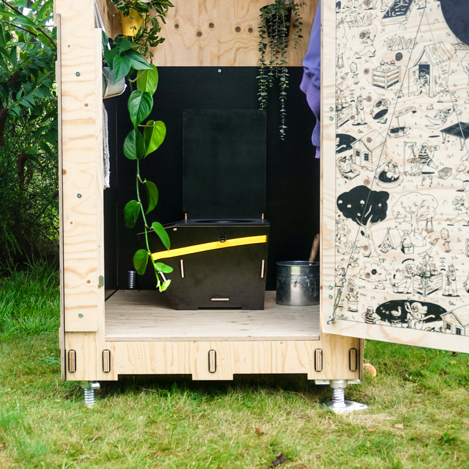 Die ressourcensparende Toilette funktioniert autark, ohne den Einsatz von Wasser, Chemie oder Strom. Sie wird mit natürlichem, biologisch abbaubarem Einstreu wie »Kackpulver« oder Holzspäne "gespült". Bei korrekter Verwendung kannst du deine Geschäfte ohne lästige Gerüche verrichten (abhängig von Nutzungsfrequenz und Personenanzahl).
