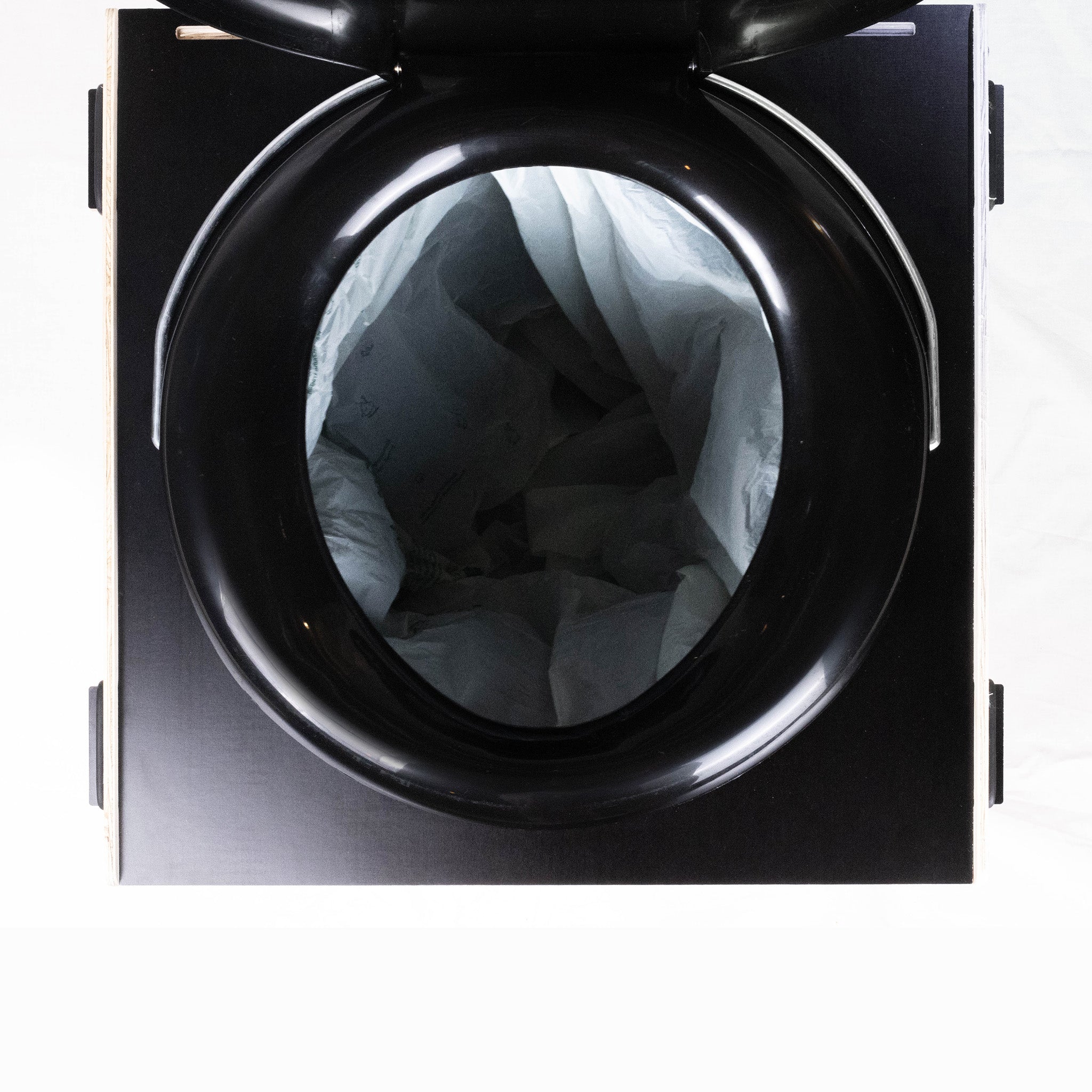 Der Toiletteneimer besteht aus 100% recyceltem Kunststoff.